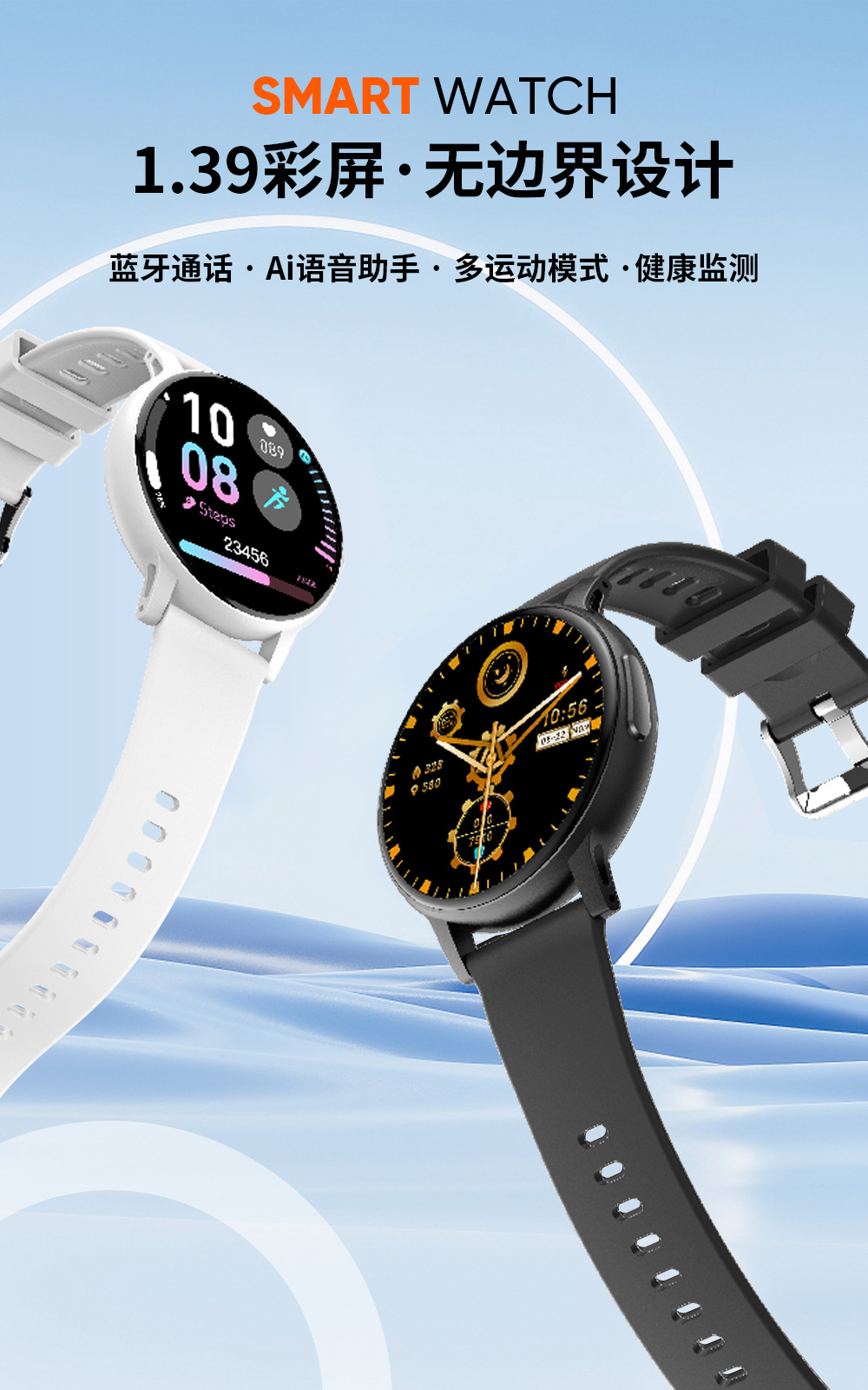 功能计步,心率监测,血压测量,蓝牙通话,智能提醒,遥控自拍,睡眠监测,血氧检测