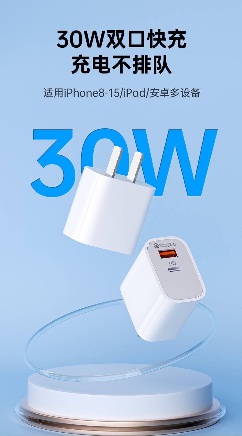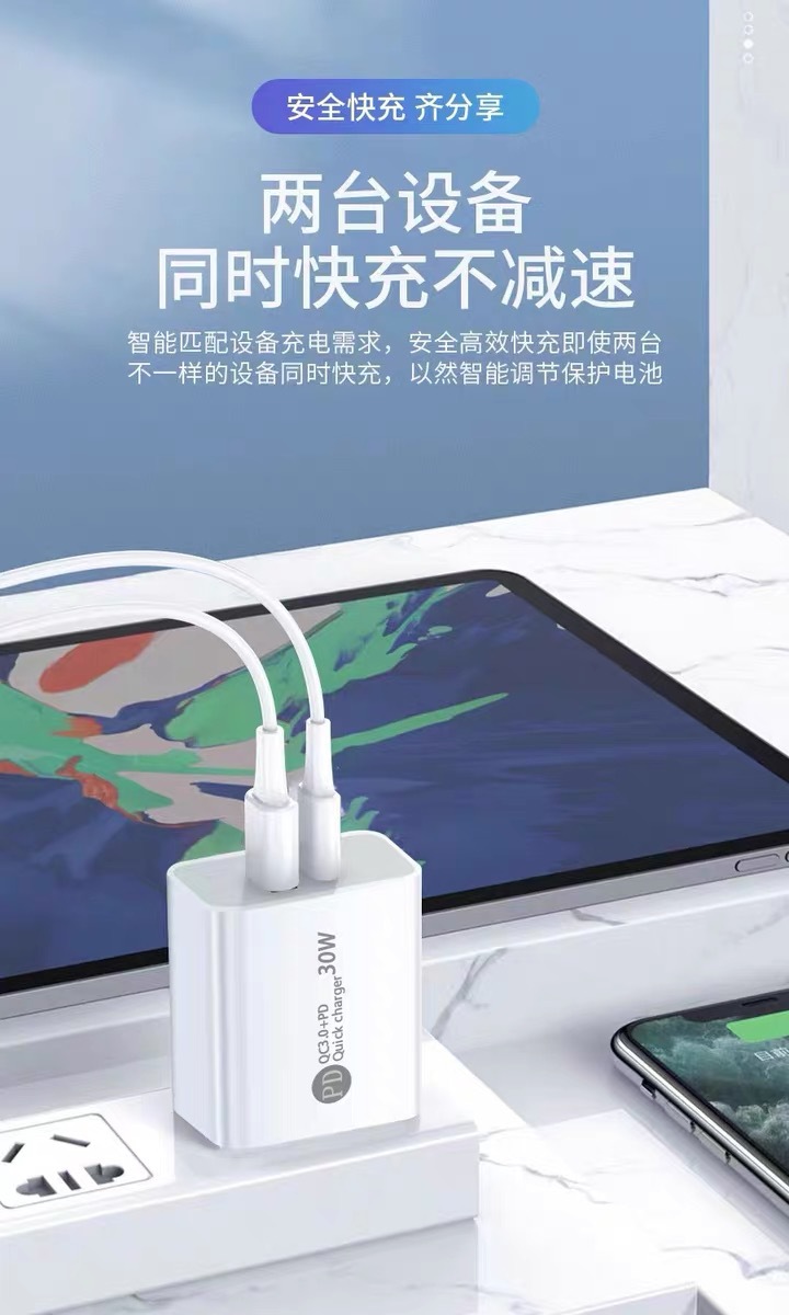 双口充电头PD30W双口充电头